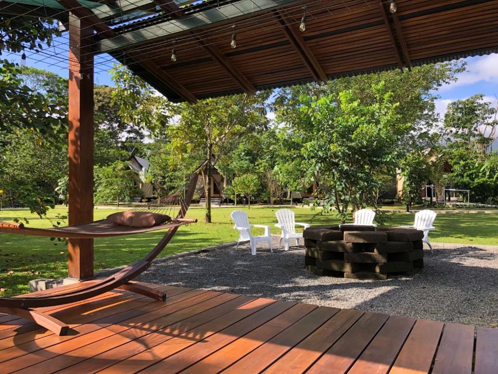 Arenal Glamping Hotel ligt aan de voet van de Arenal vulkaan en combineert natuur met comfort, midden in een van de meest actieve regio’s van Costa Rica. Vanuit jullie luxe tenten hebben jullie uitzicht op de vulkaan en starten activiteiten direct in de omgeving, zoals wandelen in Arenal Volcano National Park, ontspannen in warmwaterbronnen en ziplinen door het regenwoud. Ook bezoeken jullie eenvoudig La Fortuna, waar restaurants, winkels en excursies samenkomen. In de omgeving vind je watervallen zoals La Fortuna Waterfall en mogelijkheden voor rafting en wildlife tours. De locatie maakt het makkelijk om natuur, avontuur en ontspanning met elkaar te combineren tijdens jullie verblijf.