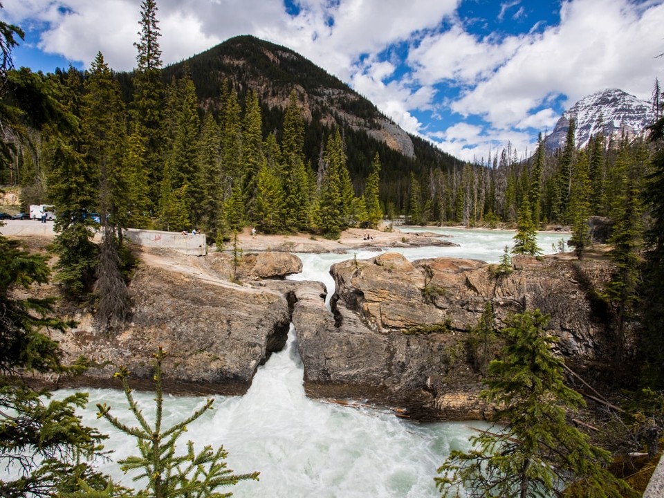 De Natural Bridge is een door erosie gevormde rotsformatie in de Kicking Horse River. Het snelstromende water heeft in de loop van duizenden jaren een doorgang uitgesleten, waardoor de rivier nu onder de natuurlijke brug doorgaat. Bezoekers kunnen gebruikmaken van verschillende uitkijkpunten langs de weg om de brug en de rivier van dichtbij te bekijken. In elk seizoen verandert het aanzicht, met hoog water in de lente en een bevroren rivier in de winter. Dankzij de directe ligging langs de hoofdweg is de Natural Bridge eenvoudig bereikbaar en vaak een korte tussenstop tijdens een rit door Yoho National Park.