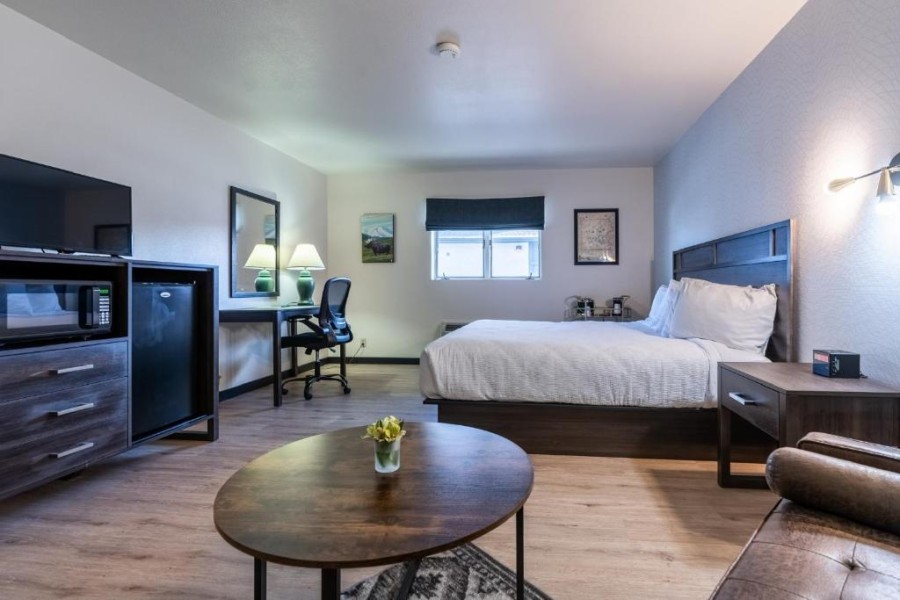 The Scout INN ligt in het hart van downtown Cody, Wyoming en is de ideale uitvalsbasis voor een comfortabel verblijf vlak bij Yellowstone National Park.De recent gerenoveerde kamers zijn modern en praktisch ingericht en beschikken over een eigen badkamer met föhn, airconditioning, magnetron, koelkast en gratis privéparkeergelegenheid. Voor extra gemak kunnen gasten gebruikmaken van de wasservice met strijkfaciliteiten.De receptie is dagelijks geopend van 08.00 tot 22.00 uur, waar het vriendelijke personeel klaarstaat om je verblijf zo aangenaam mogelijk te maken.Yellowstone Regional Airport ligt op slechts 3 kilometer afstand, terwijl de oostelijke ingang van Yellowstone National Park binnen ongeveer 52 mijl te bereiken is. Restaurants, winkels, musea en bezienswaardigheden van Cody bevinden zich bovendien op loopafstand van het hotel.The Scout INN combineert een centrale ligging met comfort en gemak – perfect voor reizigers die Cody en Yellowstone willen ontdekken.