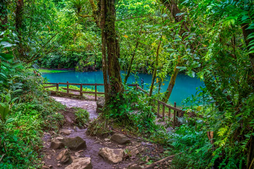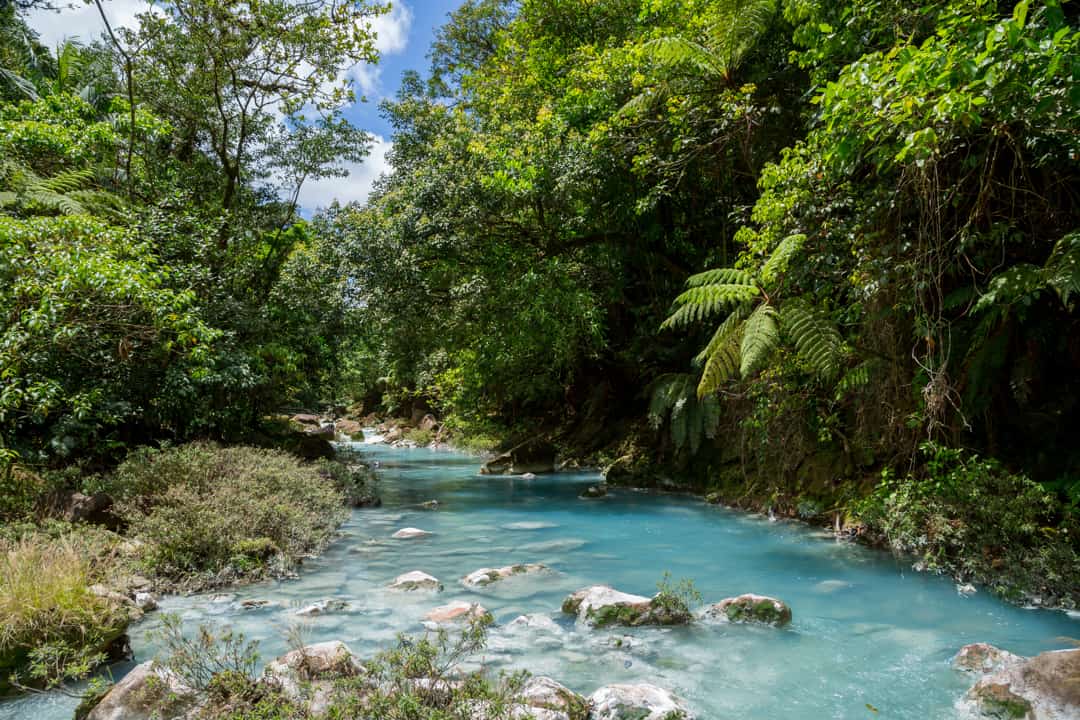 Río Celeste ligt in Tenorio National Park en staat bekend om zijn opvallende turquoiseblauwe kleur, die ontstaat door een natuurlijke reactie van mineralen in het water. De rivier is een van de meest bijzondere natuurverschijnselen van Costa Rica en vormt een belangrijk onderdeel van het park. Tijdens een wandeling door het gebied volgen jullie paden langs de rivier, met als hoogtepunt de Río Celeste waterval, waar het blauwe water naar beneden stort. Verderop ligt het punt waar twee heldere rivieren samenkomen en direct van kleur veranderen, een uniek verschijnsel in de natuur. De omgeving bestaat uit dicht regenwoud met diverse diersoorten en vulkanische invloeden die het landschap vormen.